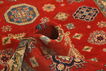 Разработайте технику ткачества вместе с мастером, привязывая узелки, чтобы создать ряд волокон, обрезая каждый отдельный узелок или целый ряд узелков. Вязание вручную занимает больше времени, но и позволяет создать более замысловатый орнамент.