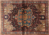Этот ковер соткан в области Хамадан в северо-западной Персии. Ковер грубо соткан с использованием блестящей шерсти высокого качества. Основные цвета – красный и голубой. Узор состоит из геометрических элементов в стиле кочевников. Иногда в рисунке ковра встречаются медальоны.