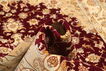 Разработайте технику ткачества вместе с мастером, привязывая узелки, чтобы создать ряд волокон, обрезая каждый отдельный узелок или целый ряд узелков. Вязание вручную занимает больше времени, но и позволяет создать более замысловатый орнамент.